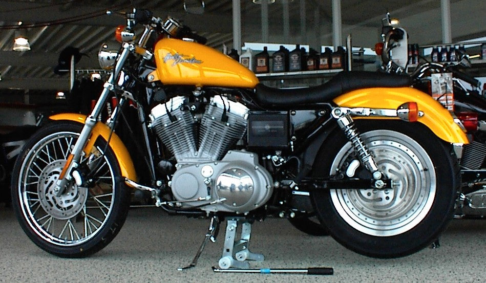 The motorcycle jack makes working on your bike a lot easier. Whether changing the oil, changing tires or other maintenance work, with a motorcycle jack you have the motorcycle safe and stable in the optimal working position.