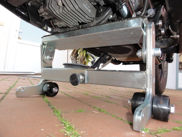 Practical motorcycle jack for motorcycles with frame supports such as Harley Davidson Softail ✔