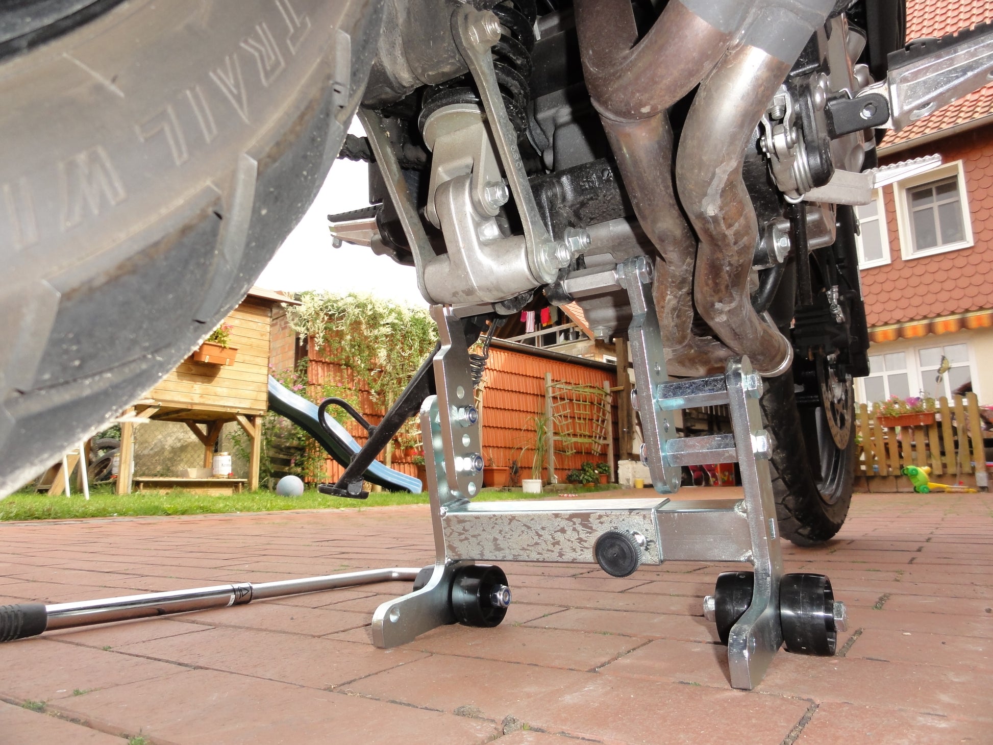 Praktischer Motorradheber zum Anheben der Suzuki DL 650 V-Strom und DL 1000 V-Strom (altes Modell)