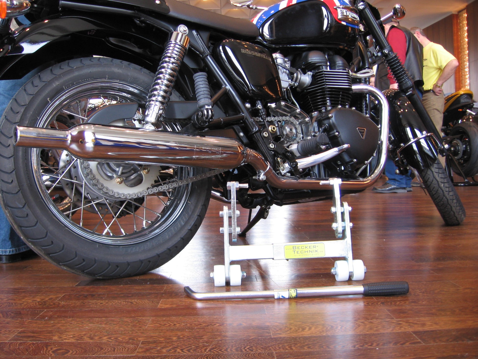 -die Triumph ist durch den Lifter sehr sicher und nahezu mittig angehoben.